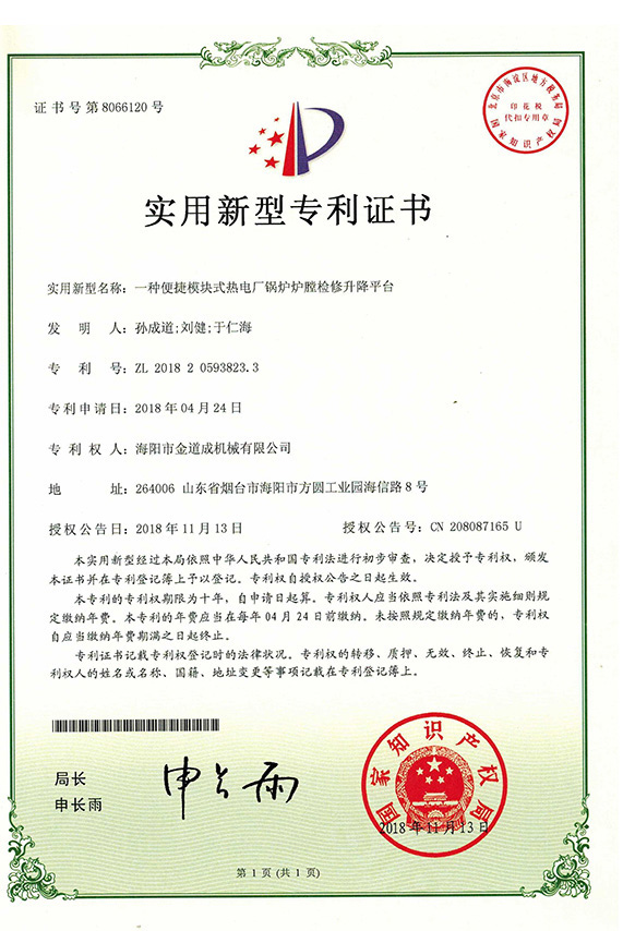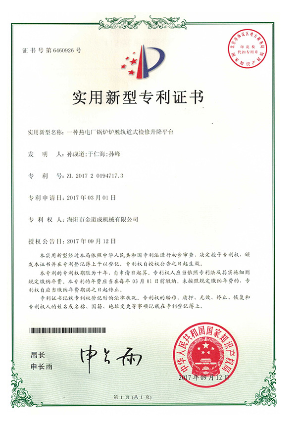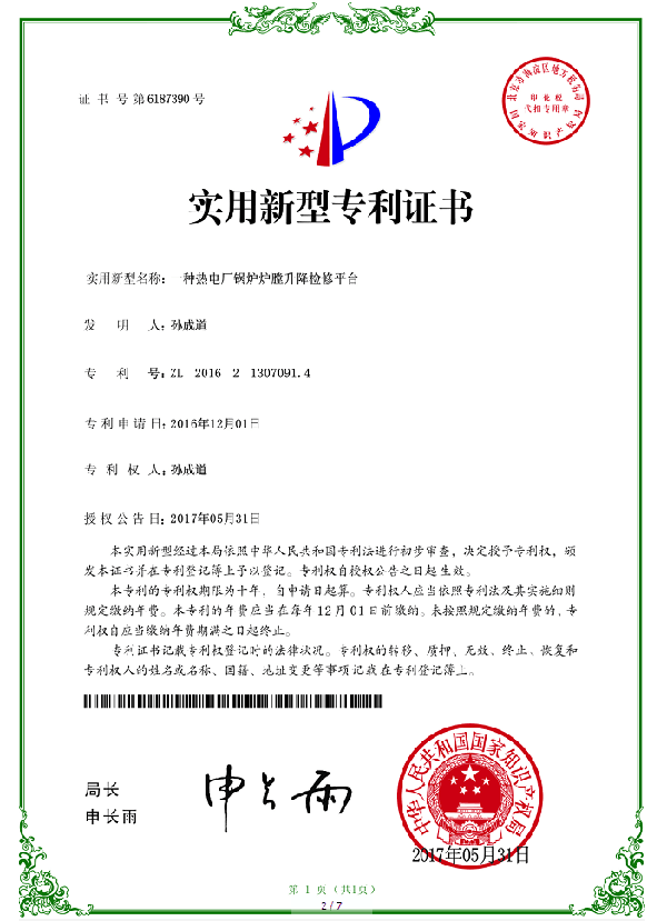 新聞中心下支撐折疊式鍋爐爐膛檢修平臺(tái)行業(yè)首項(xiàng)國家專利發(fā)明者